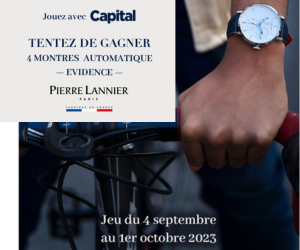 Capital propose de vous faire gagner l’une des 4 montres automatiques Évidence de Pierre Lannier via son jeu concours gratuit.