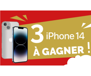 Jusqu’au 08 mai 2023, vous pouvez tenter votre chance et mettre la main sur un iPhone 14. Pour cela, il vous suffit de vous inscrire au tirage au sort des 3 iPhones 14 d’Apple qui sera effectué prochainement par Relay. Envoyez ainsi votre candidature avant la date indiquée.